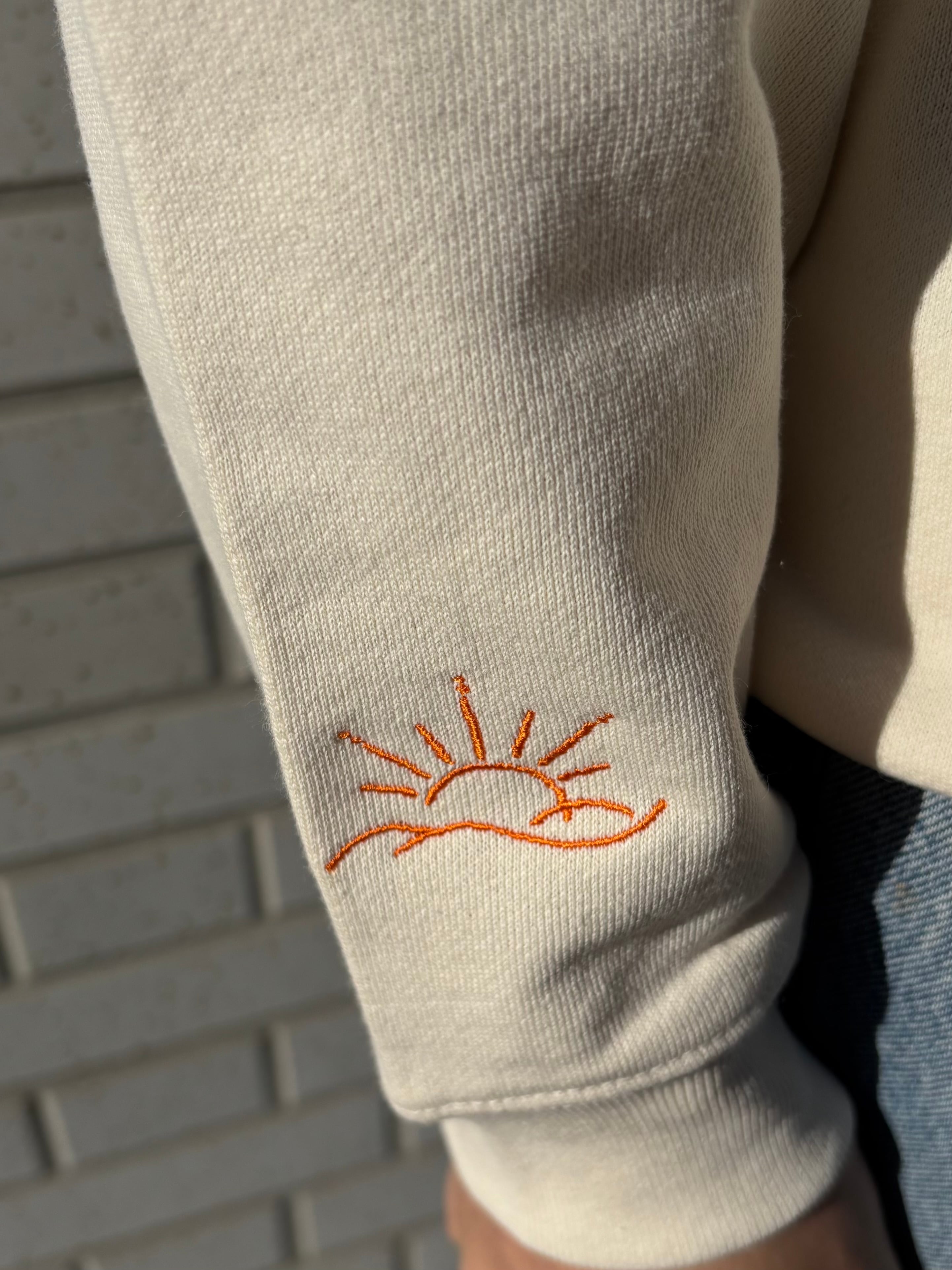 ふとしたときに見える右袖の太陽が皆様の日常を照らす、お守りのような存在のスウェットになればと思っております!